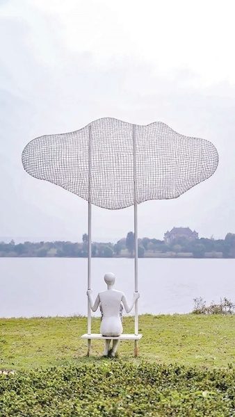 公园不大,走一走就能遇上不少艺术感的雕塑,白云的元素在园内处处可见。有的躺在云上,有的倚在云边,白日梦想在公园浮想联翩。