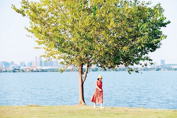 在藏龙岛湿地公园沿湖漫步,有一种海边度假的惬意。悦湖公园里,一棵“孤独的树”,当你望向它时,它也回望着你,彼此站着不说话,就十分美好。