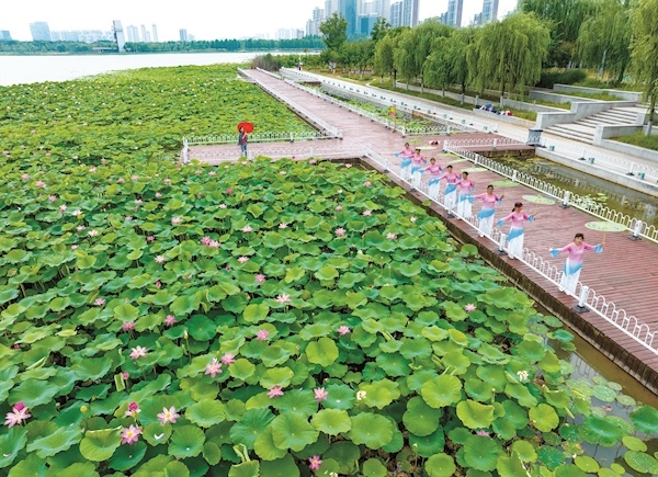 公园划分为三大功能区,即文化共享、生态体验区和运动休闲区,整体呈“一环、一心、三块、八景”结构布局。周末傍晚,吃过晚饭,跑步健身的人络绎不绝。滑滑梯、玩沙子,笑容挂在小朋友脸上。