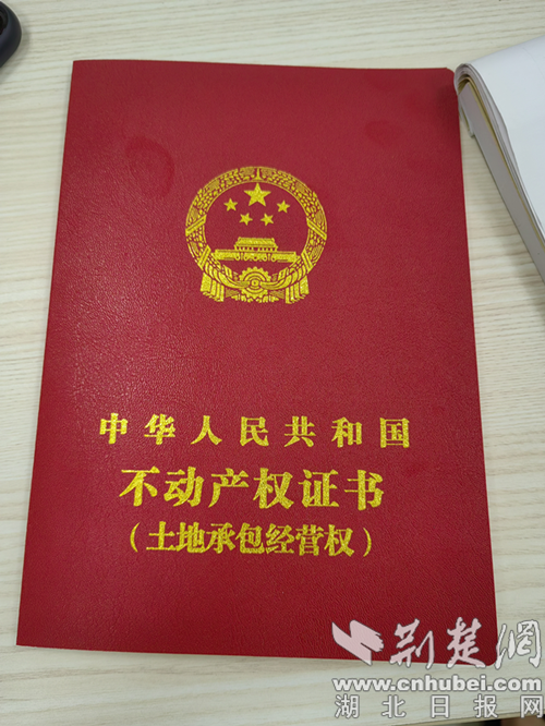 荆楚网(湖北日报网)讯(通讯员 黎绍先、张佳美)6月29日,笔者从襄阳市不动产登记局获悉,襄阳市不动产登记窗口受理了一笔高新区刘集办事处武坡社区赵明举土地承包经营权业务,并颁发了全市首本农村土地承包经营权不动产权证书。