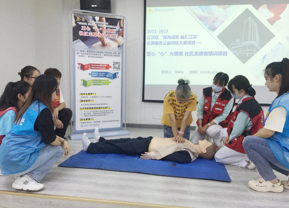 据了解,武汉亚洲心脏病医院坚持开展心肺复苏培训已有8年时间,累计培训了2500余名“救心侠”,今天的活动是首次持续性、系统化对江汉区机关工作人员、社区网格员和志愿者、专业社工等群体开展心肺复苏技术的理论、实操培训,也是亚心“心”火燎原社区志愿者培训项目的首站。该公益项目在今年江汉区“微光成炬 益汇江汉”志愿服务公益创投大赛中荣获一等奖,首批计划培训100名社区志愿者,通过他们将心肺复苏技术普及、传递给他们身边的人,形成“心”火燎原之势,以助于挽救更多的生命。
