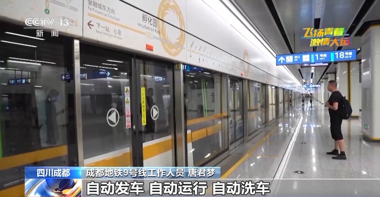 成都地铁9号线工作人员 唐君梦:我们9号线采用最高自动化等级GoA4运行,列车可全面实现自动唤醒、自动发车、自动运行、自动洗车、自动回库、自动休眠。