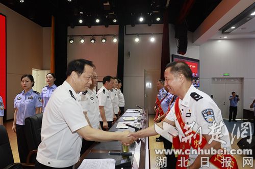襄阳市副市长、市公安局党委书记、局长李新桥出席会议并讲话,市公安局党委副书记、副局长李海东主持会议,市公安局党委委员、政治部主任曾林宣读《关于表彰2023年全市公安机关"两优一先"的决定》。