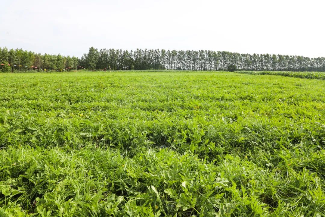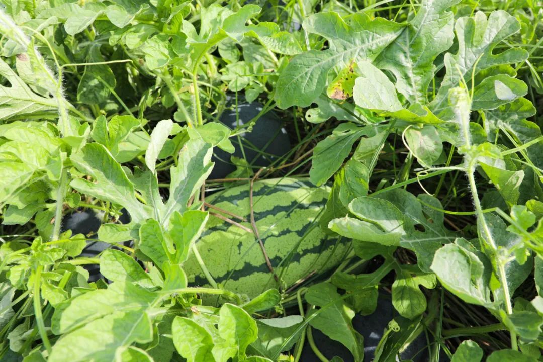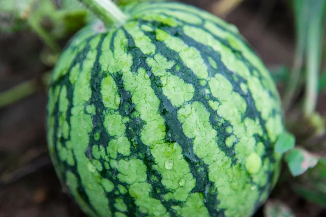 一个个西瓜像绿宝石一样,静静地躺在田里,等待着被采摘。