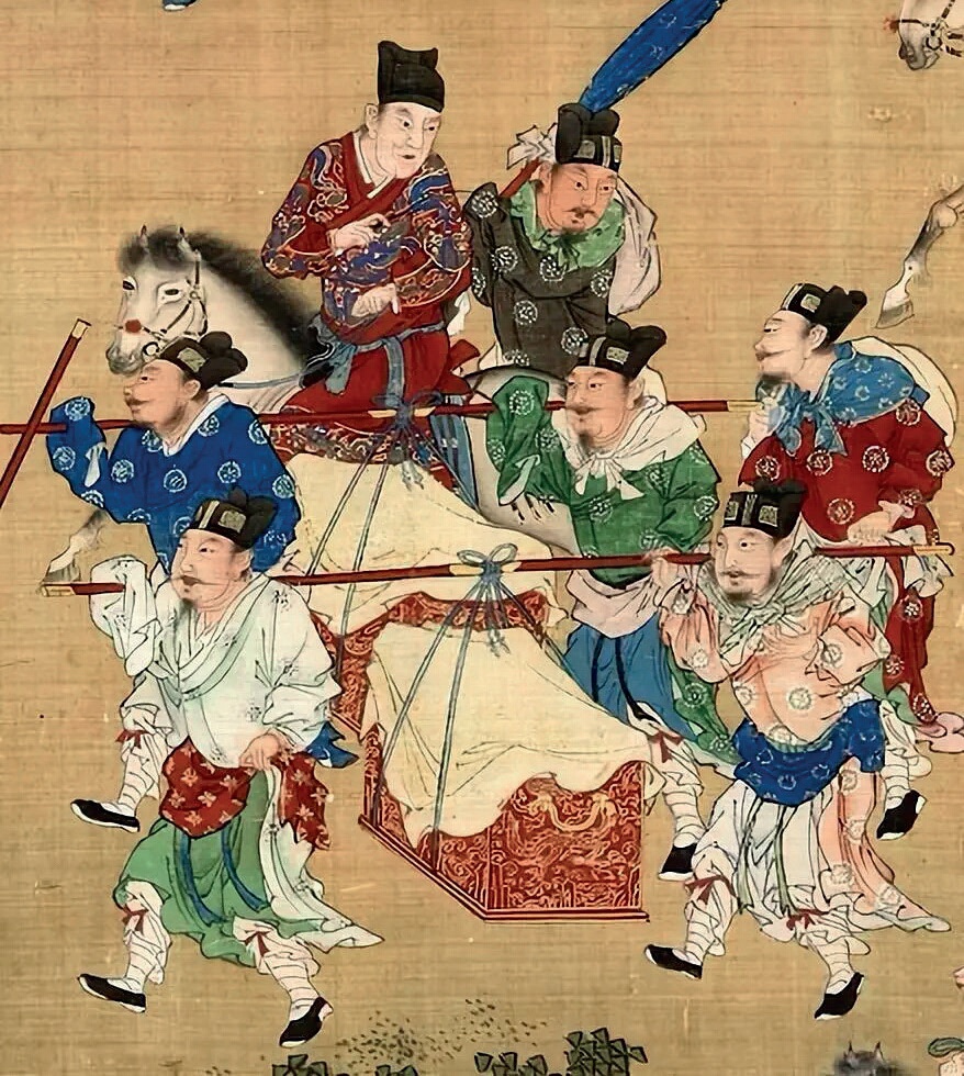 △ 明代《出警入跸图》中,搬运箱子的场景