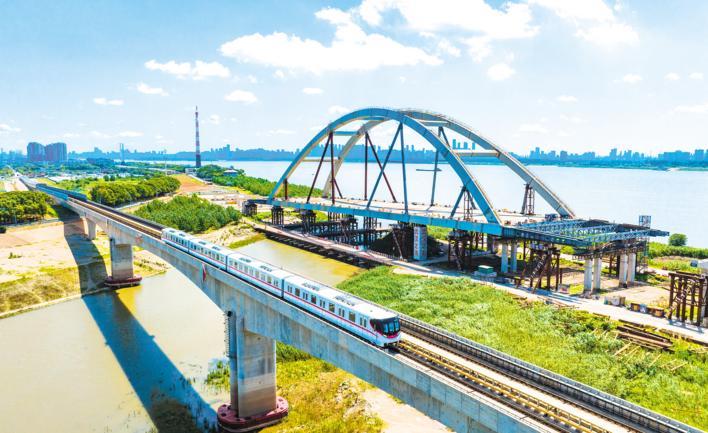 6月27日,武汉经开区,左岸大道长河段跨通顺河大桥施工现场,重量近8000吨的主桥桥体已成功顶推跨越通顺河。左岸大道项目是武汉长江左岸产城融合发展带上的交通动脉,也是武汉市“六环二十四射”中的重要一射,跨通顺河主桥为此段控制性工程。目前,左岸大道武汉经开段各个施工现场一片繁忙,加紧建设保进度。