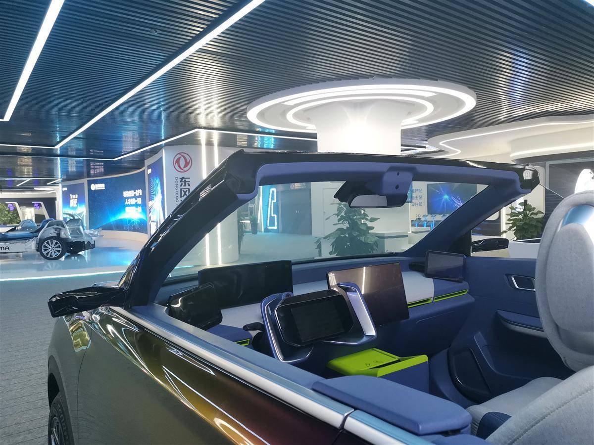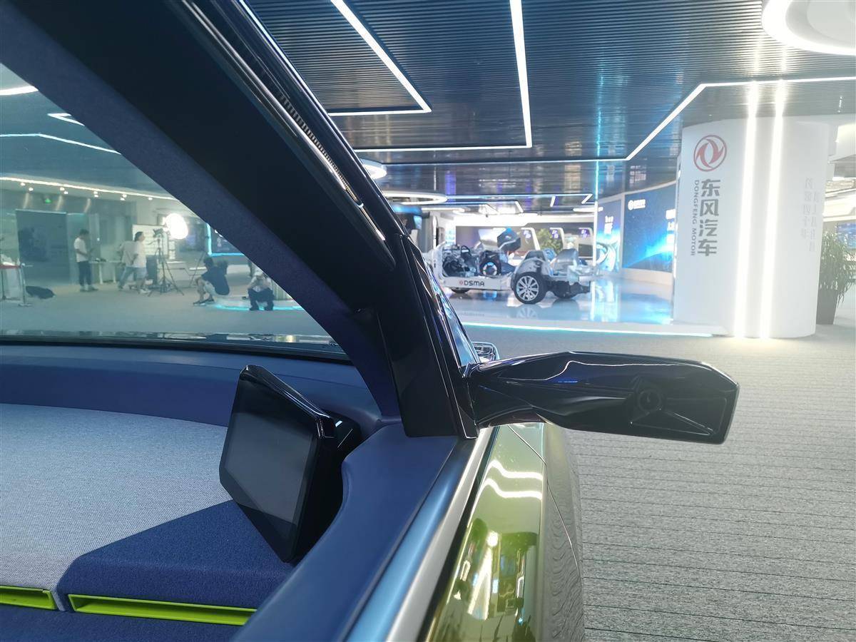 在位于武汉经开区的东风公司技术中心展厅,一辆智能座舱展品就搭载了这一最新技术。没有了传统汽车后视镜的两只大耳朵,取而代之的是,两个像小棍子一样的装置杵出来,里面内嵌小摄像头,车内座舱两侧,还配备了两个高清显示屏。