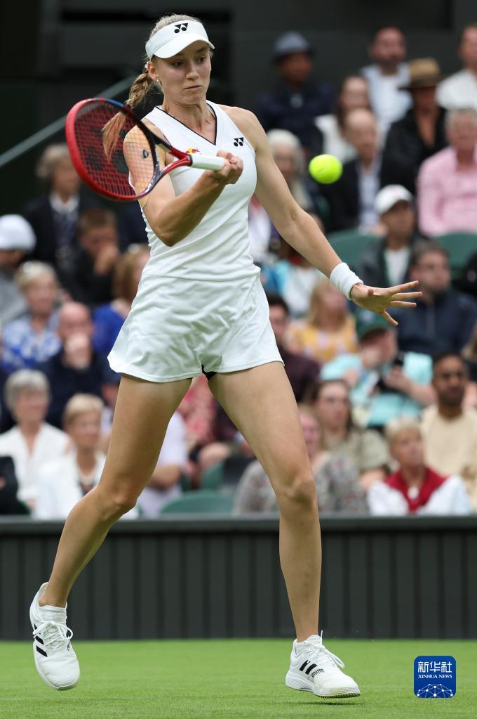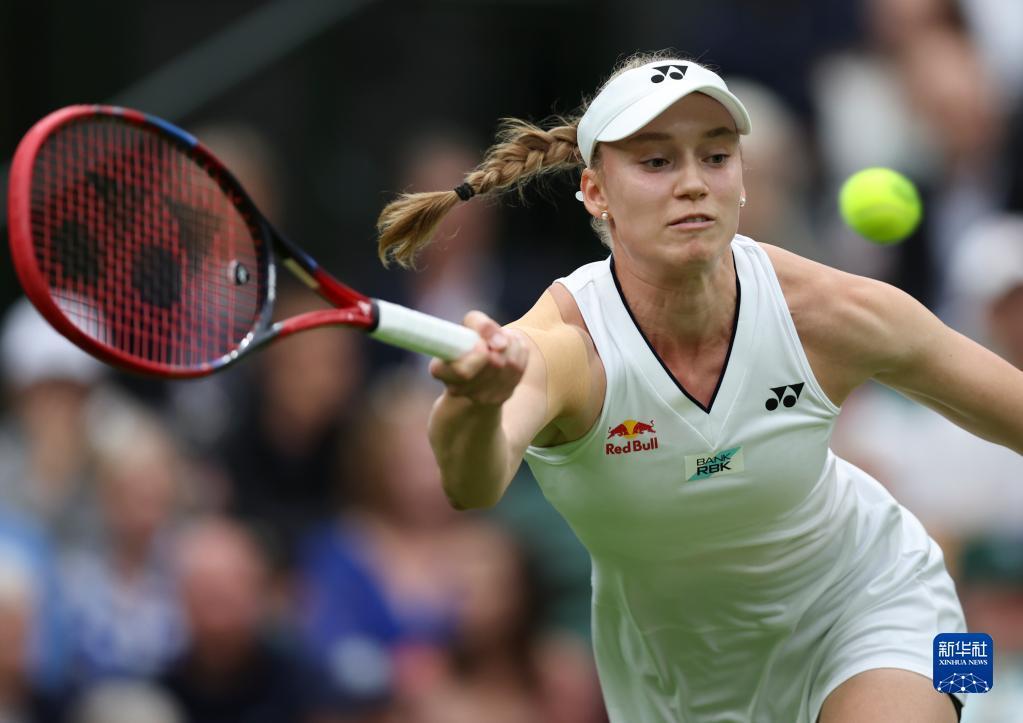 7月4日,莱巴金娜在比赛中回球。新华社记者 韩岩 摄