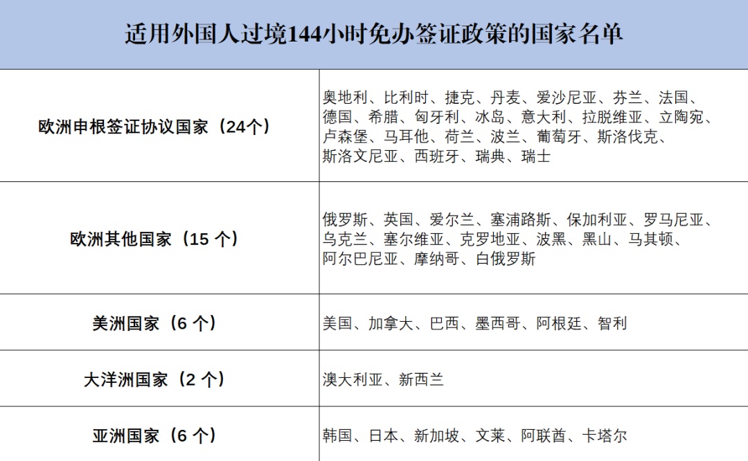 一是要属于144小时过境免签范围国家的公民(详细国家名单请看下表↓↓↓);