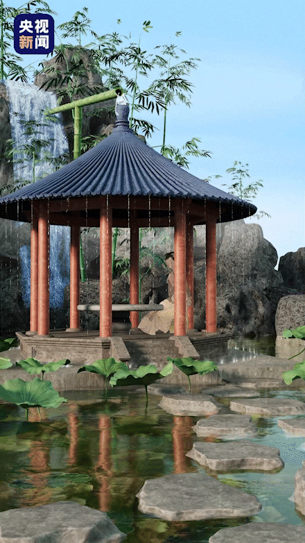 △“自雨”建筑:唐朝人想办法把水引到房顶上,再让水从房顶落下,仿佛下雨一样,以达到解暑降温效果。据记载,白居易曾把剖开的竹筒相接,做成“高架引水渠”,从山泉中引水,让泉水从他草堂的屋檐倾落,在炎热中感受清凉。