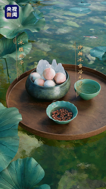 △消暑冰饮:据宋代《东京梦华录》记载,当时人们的消夏冷食有冰雪冷元子、水晶皂儿、生淹水木瓜、绿豆甘草冰雪凉水等。