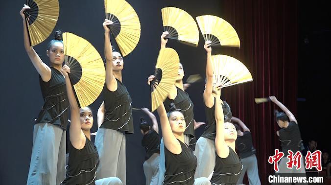 嘉义女子高级中学的学生在表演舞蹈节目《逐扇》。 张践 摄