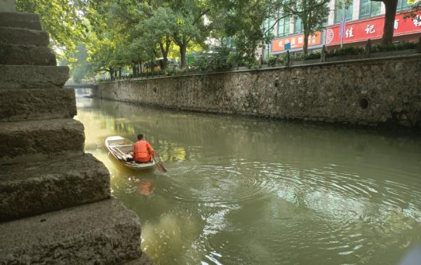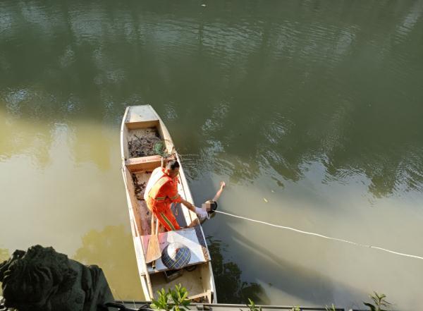 刚清运完一部分垃圾,划船经过