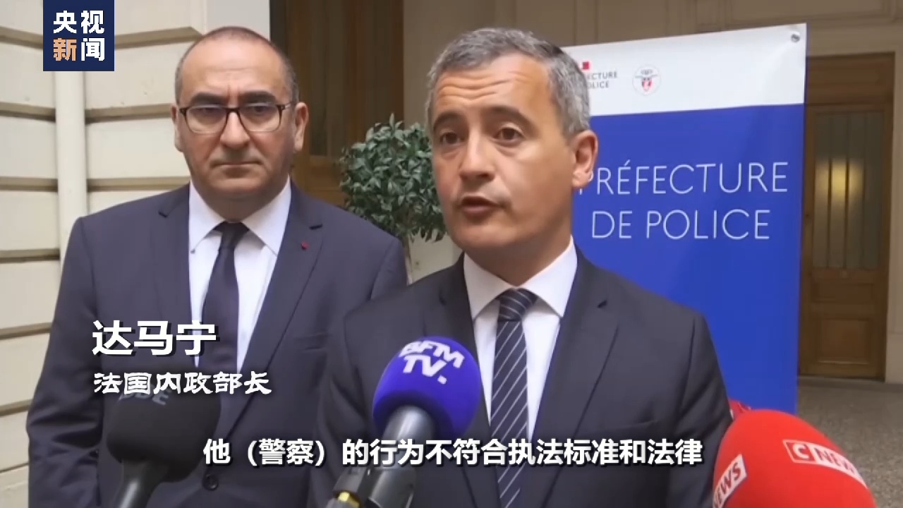 法国内政部长 达马宁:从视频来看,他(警察)的行为不符合执法标准和法律。