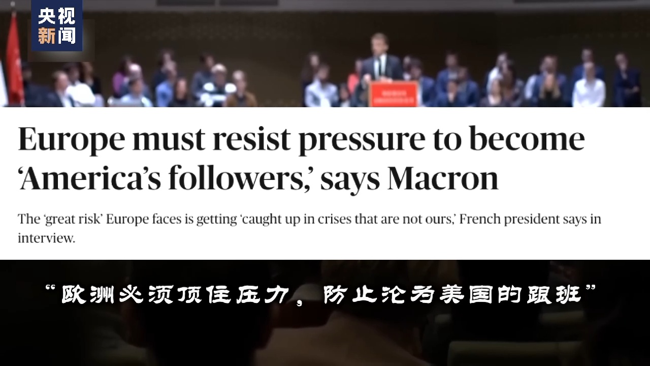 4月9日,马克龙对政客新闻网表示,“欧洲必须顶住压力,防止沦为美国的跟班”。