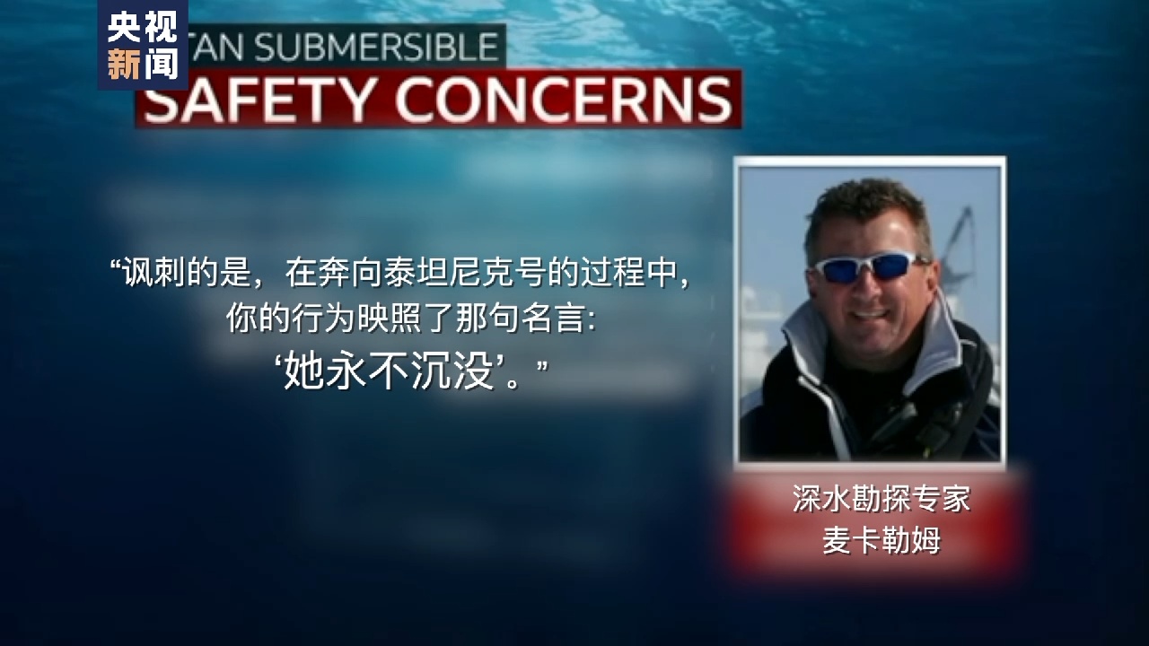 美国哥伦比亚广播公司记者 波格:“泰坦”号是一艘未经任何监管机构批准或认证的实验性潜水器。下潜可能导致身体伤害、残疾、情感创伤或死亡。