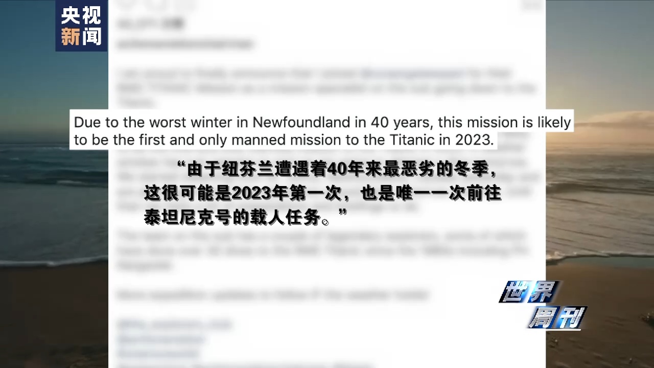 6月17日,也就是“泰坦”号正式下潜的前一天,英国亿万富翁哈丁在自己的社交媒体账号发布了一篇日志:“由于纽芬兰遭遇着40年来最恶劣的冬季,这很可能是2023年第一次,也是唯一一次前往‘泰坦尼克’号的载人任务。”