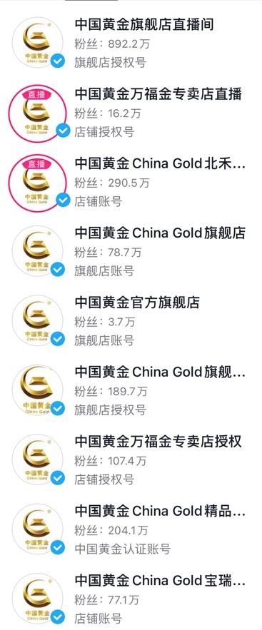 抖音上,获得蓝V认证的中国黄金账号有60余个。