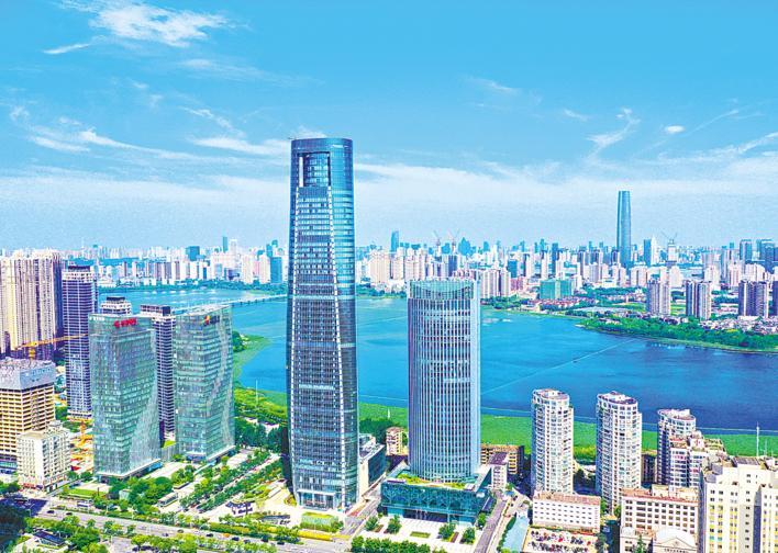 7月10日,远眺武昌中北路新落成的襄阳大厦。目前,这座由汉江国投在武汉投资建设、中建三局总承包公司承建的超高层地标性建筑已正式交付。作为武昌区金融主轴的核心项目之一,襄阳大厦将成为襄汉共同形象窗口、两地经济文化交流的平台,有力支撑武汉构建湖北城市总部经济集聚区。(湖北日报全媒记者 田悦 通讯员 何丽 摄)