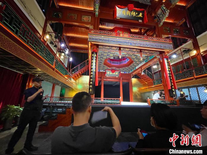“高质量发展调研行”北京主题采访活动走进有着300多年历史的正乙祠戏楼。 中新社记者 杜燕 摄