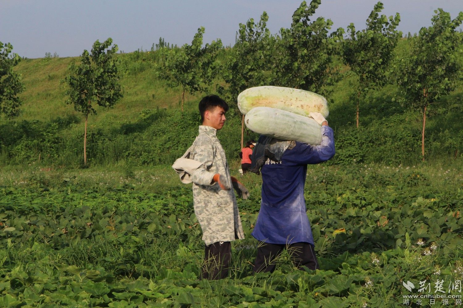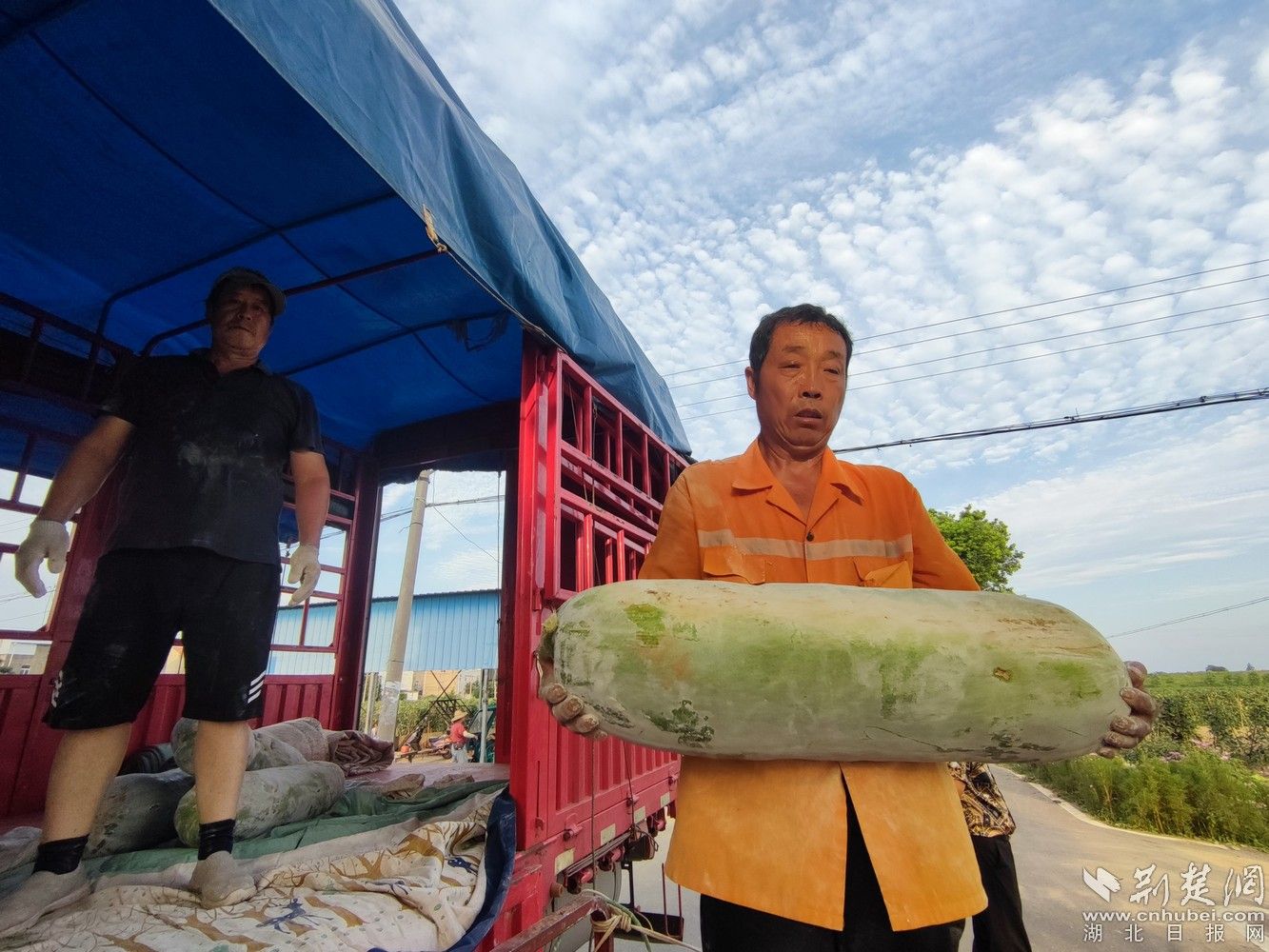 荆楚网(湖北日报网)讯(通讯员陈保忠、吴冲、王芬)2023年7月11日,云梦县城关镇、隔蒲潭镇等地菜农一大早忙着在菜地收获冬瓜,供应各地市场。