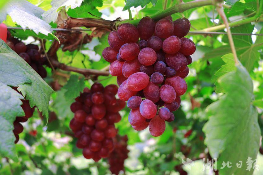 湖北日报客户端讯(通讯员 马雨彤、张裕翔)又是一年葡萄成熟时。走进丹江口市习家店镇生态农业观光园,浓郁的果香便扑面而来,引人“萄”醉。藤蔓叠生的葡萄架下,葡萄一串串、一层层,纵横交错,排列整齐地挂满枝头,飘来浓浓清香。