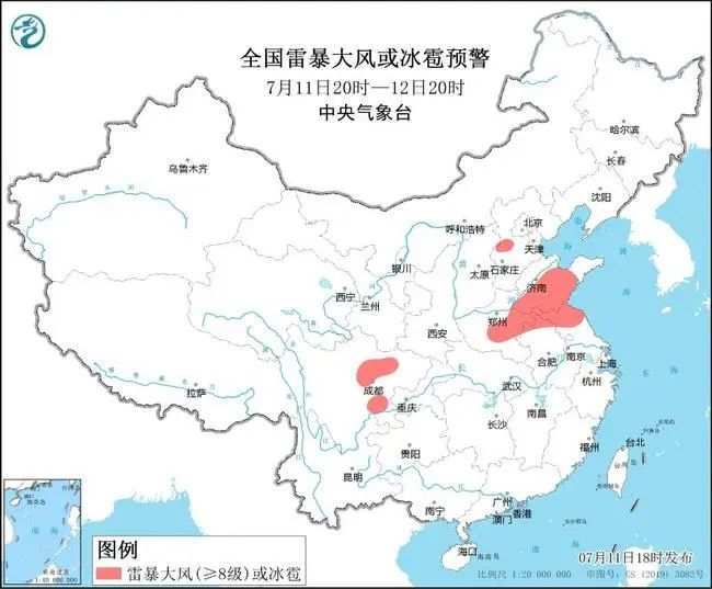 中央气象台发布强对流天气预警:今天,河北、山东、河南等6省部分地区有雷雨大风或冰雹。