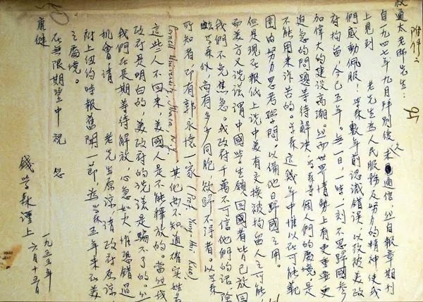 这封信辗转寄回祖国