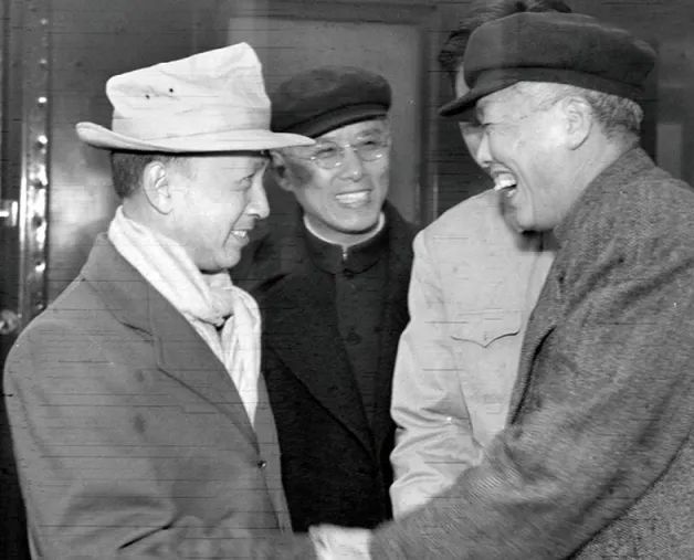 1955年10月28日,从美国返回祖国的钱学森(左一)到达北京,中国科学院副院长吴有训等迎接