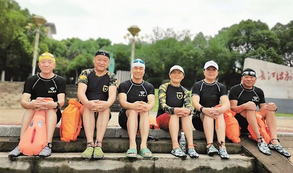 为了参加2023年渡江节,田斌群一直在积极训练,每个周末都和一起推铭牌的队友合练,“我们会游在方队最前面,6个人要互相配合好,既要方向正确,也要保证平稳,速度也要均衡,同时还要关照身后整个方队,不能游太快,也不能太慢。”他还高兴地介绍,他所在的武汉大学中南医院也成立了游泳协会,报名的人很多,今后,他要带动越来越多的同事一起游起来。