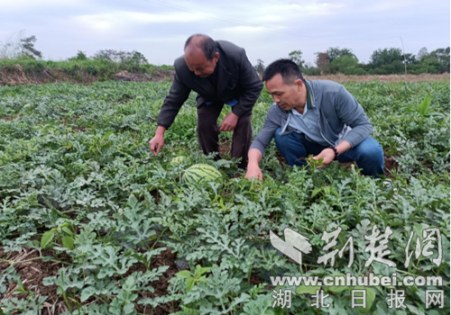 荆楚网(湖北日报网)讯(通讯员 余小帆 余海涛)烈日炎炎,绿意盎然。当前正值西瓜采摘的黄金时期。走进牌楼镇瓜田,连片的土地“铺”满绿色,藤蔓叶子随风摇曳,绿浪翻起,饱满圆润的西瓜露出“头”来,形成了一道亮丽的风景线。
