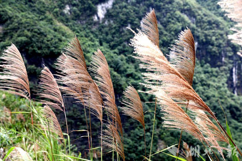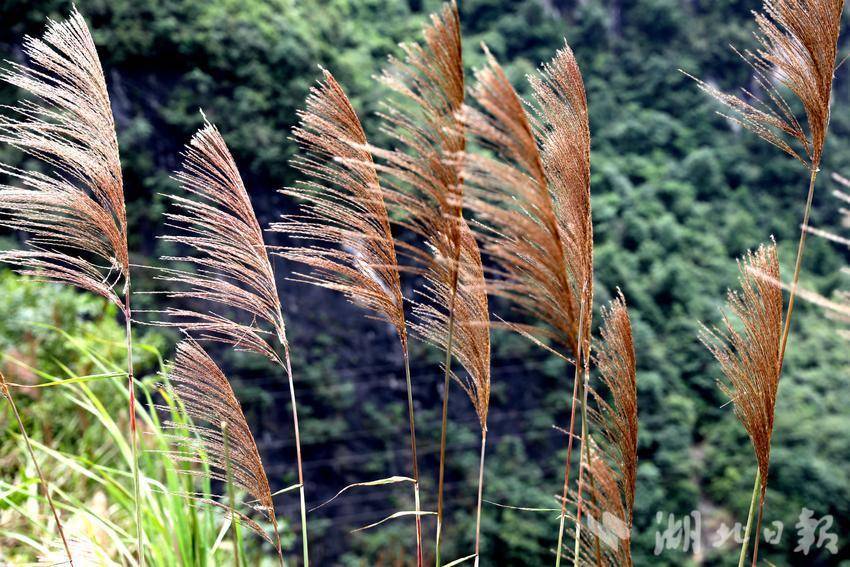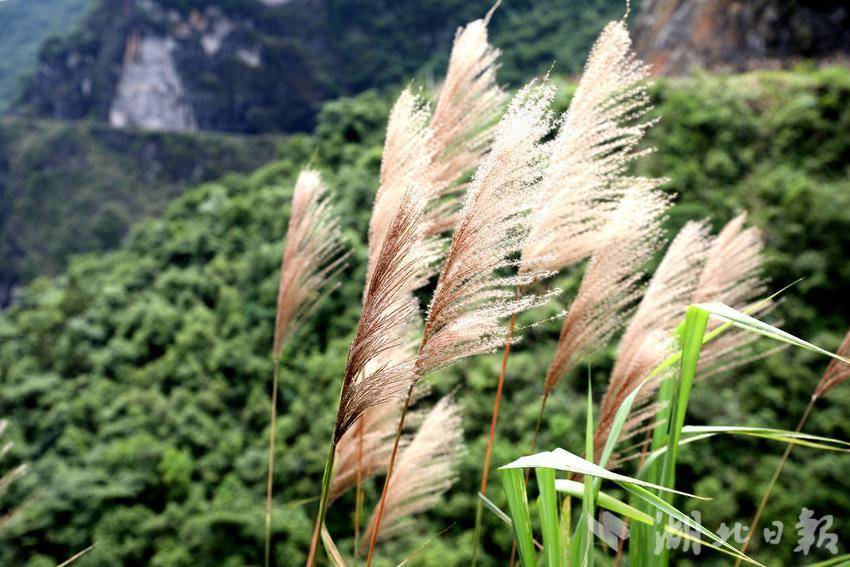 从雕岩下到底,就来到了两河口,直走可到中营镇,右转过桥就往下坪乡,一路上遍布茅草的身影,它们生命力顽强,冬季干枯,到了春风起,又开始生根发芽长成一丛丛的茅草丛随风飞舞。