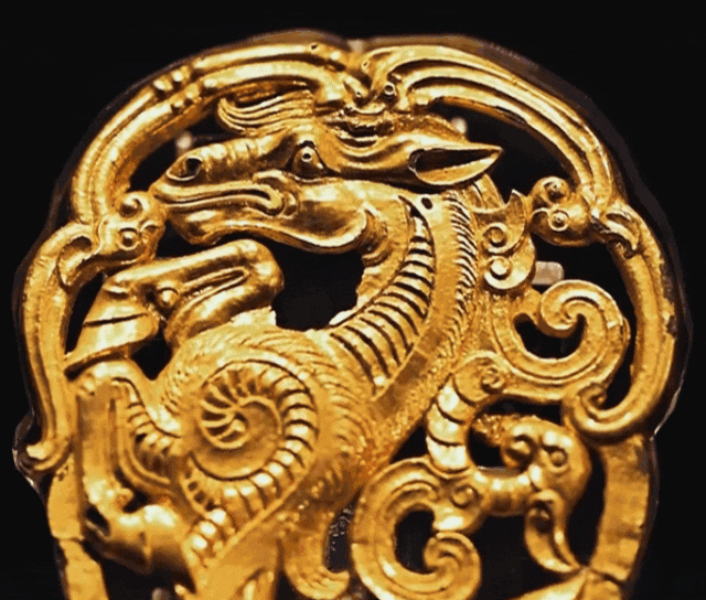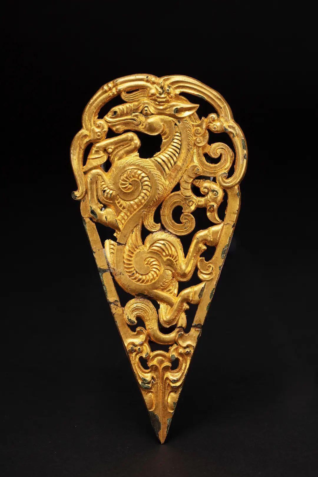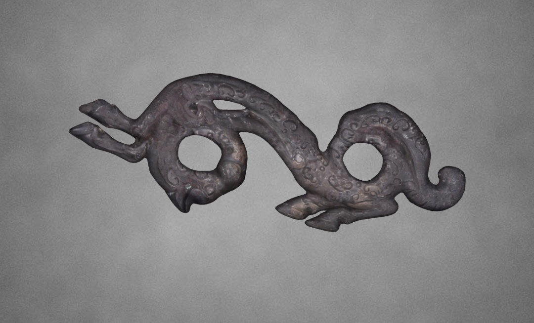△西汉青铜龙马纹马镳,济南市章丘区博物馆藏。