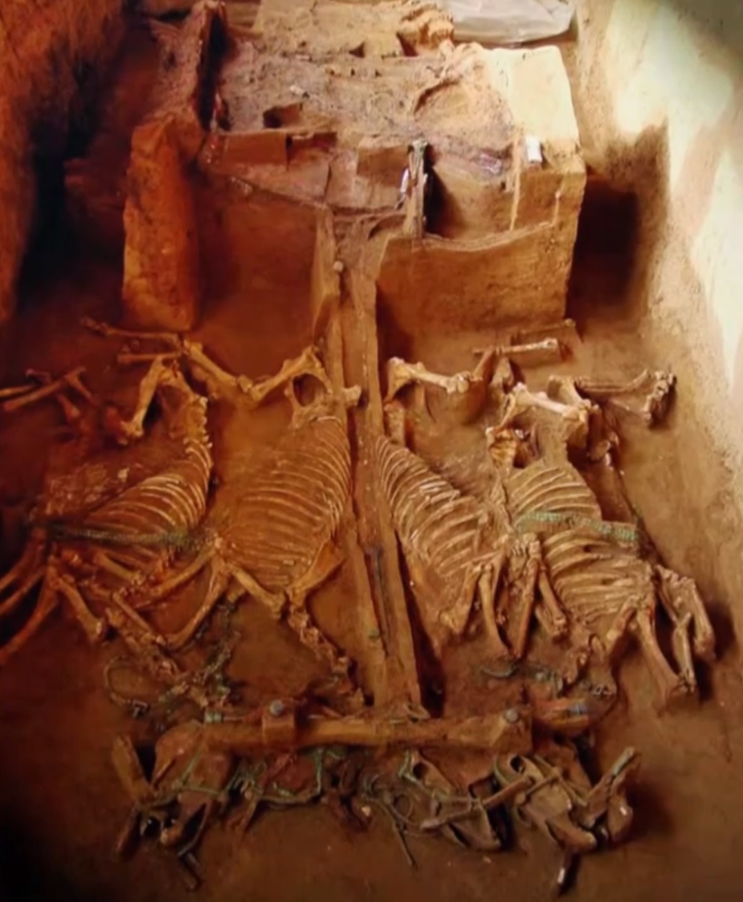 经鉴定,洛庄汉墓出土的其中两驾马车