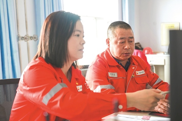 联合站副站长刘国志带着同事例行巡检。他仔细检查油井运行情况,查看井口压力、抽油机皮带、配电设施等是否正常。“要像父亲呵护自己的孩子一样呵护它们。”刘国志笑着说。