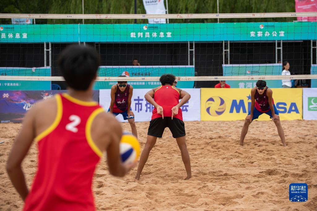 当日,2023年全国沙滩排球巡回赛(宁夏吴忠站)在宁夏回族自治区吴忠市滨河体育运动公园开赛。本次比赛为期四天,共有来自辽宁、上海、江苏、新疆、宁夏、福建等地的57支队伍参赛。