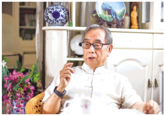 杨武能在重庆家中接受《新华每日电讯》记者采访。 龚雪梅摄