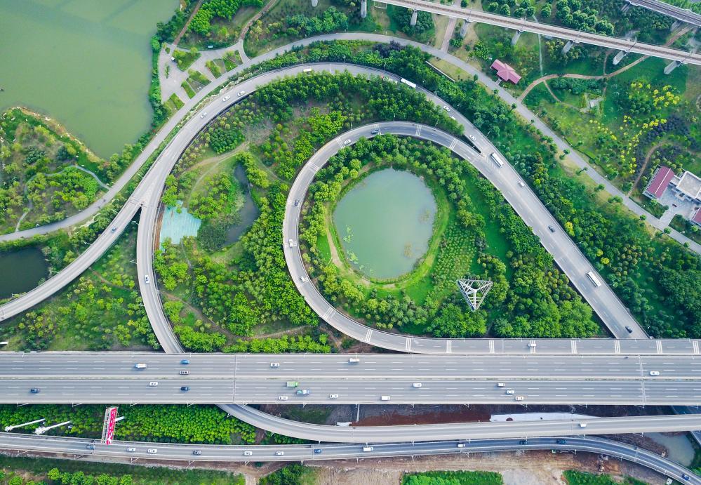 俯瞰戴家湖公园。新华社记者王建华 摄