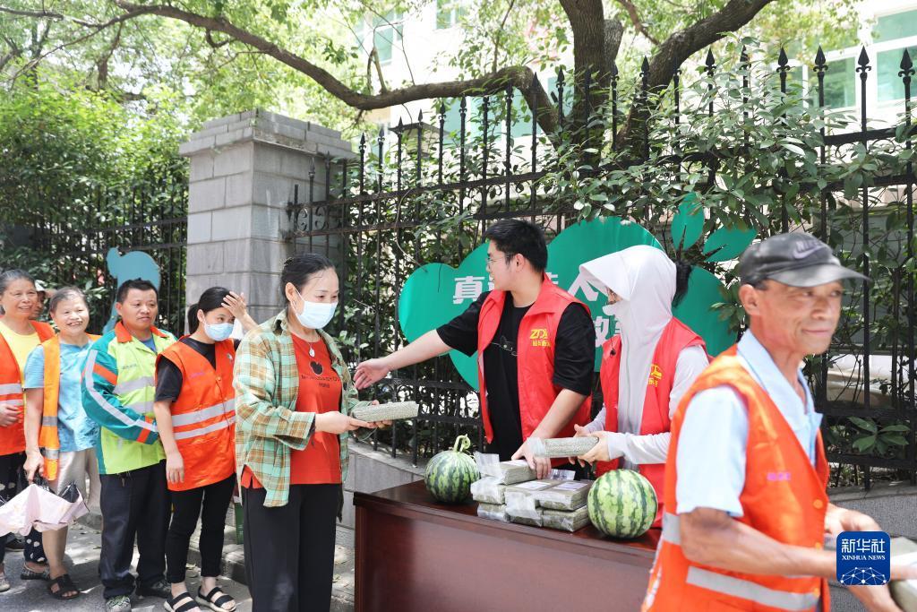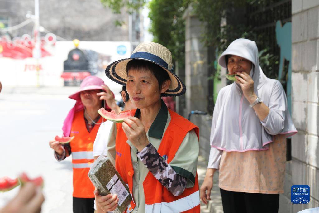 连日来,入伏后的江西南昌高温炙烤,青山湖区站东街道新时代文明实践所开展“致敬劳动者 香甜西瓜送清凉”活动,为辖区环卫工人发放绿豆和西瓜等防暑降温物品,送上一份清凉与关怀。