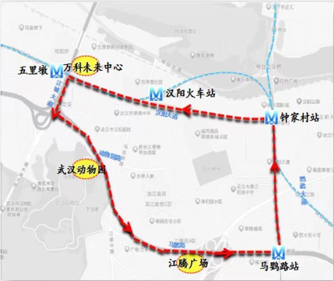 为做好动物园开园公交服务保障,7月15日,武汉公交提前开通公交“动物园循环线”,线路串联起3个商业体(五里墩万科、江腾广场、钟家村),以及4个地铁站和2条地铁线路(4号线、6号线),加强了商圈、地铁站与动物园之间交通联系,解决了游客出行“最后一公里”难题。