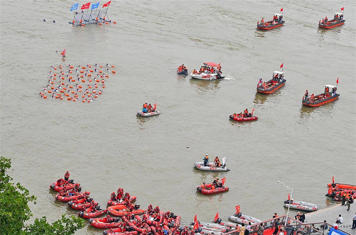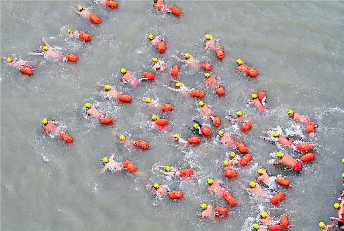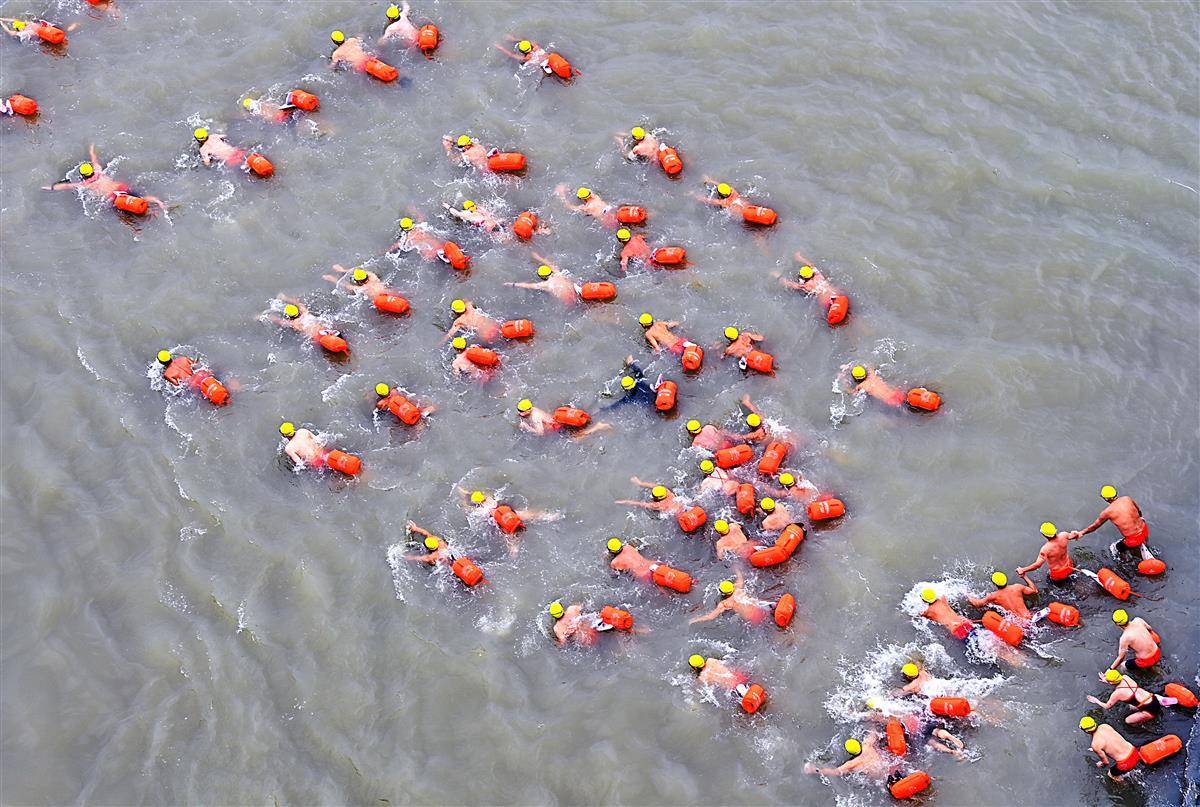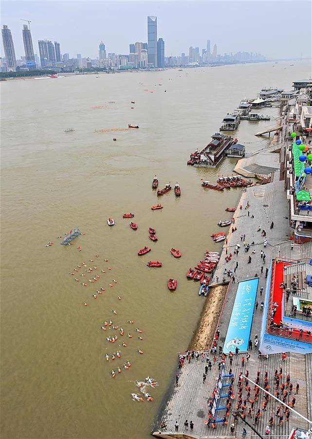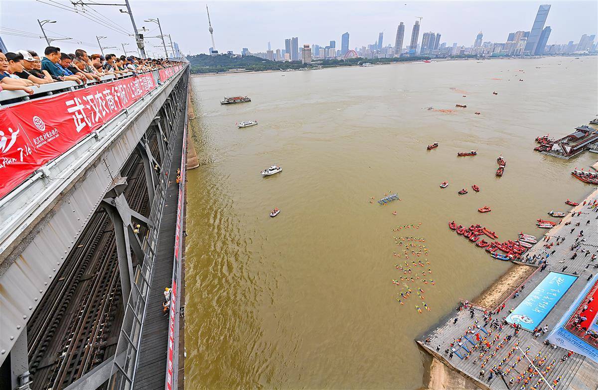 (合并视频)武汉渡江节:长江大桥成最佳看台9