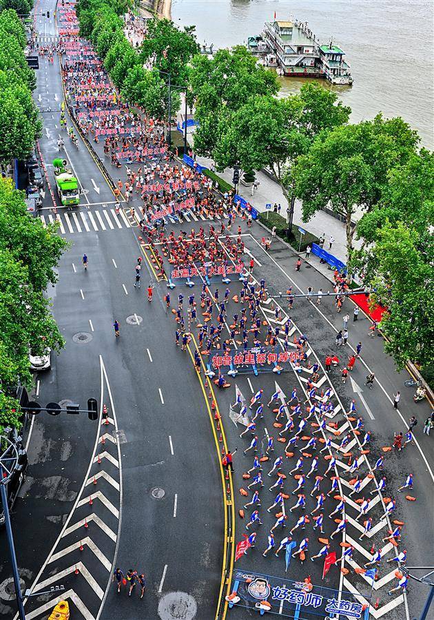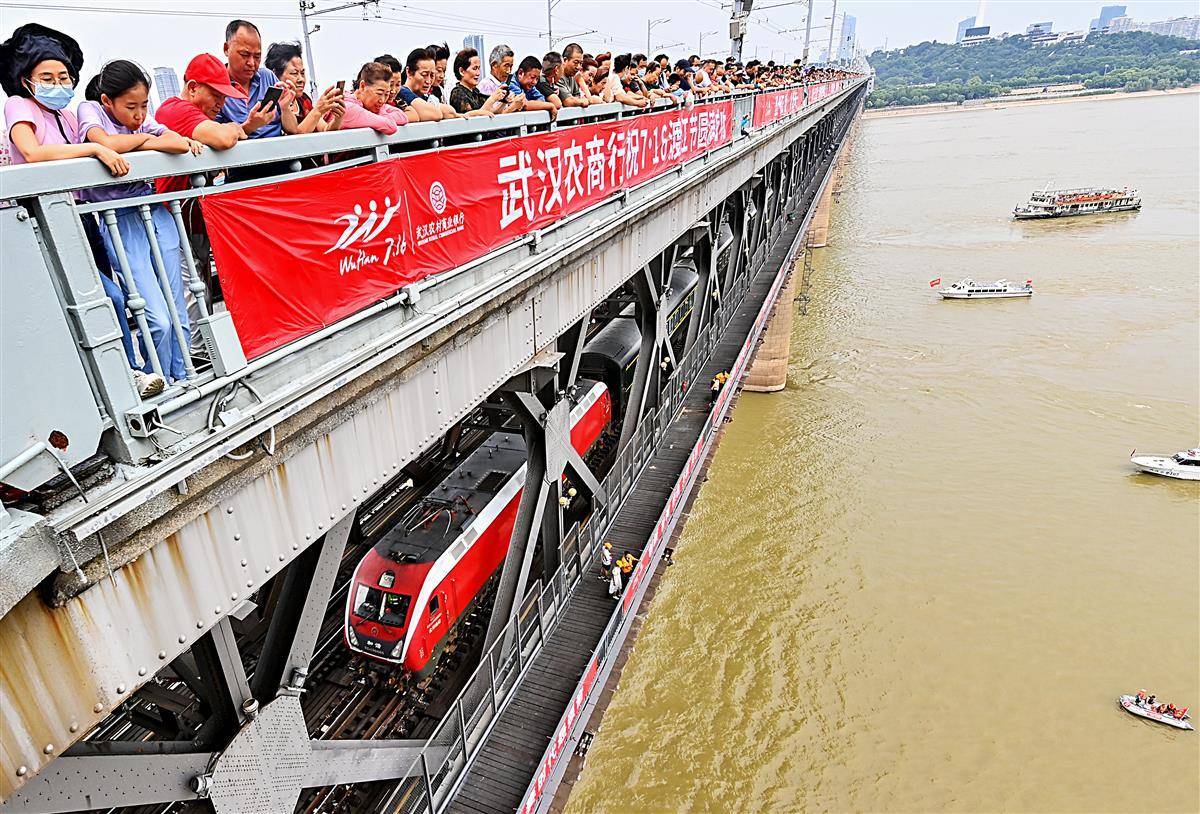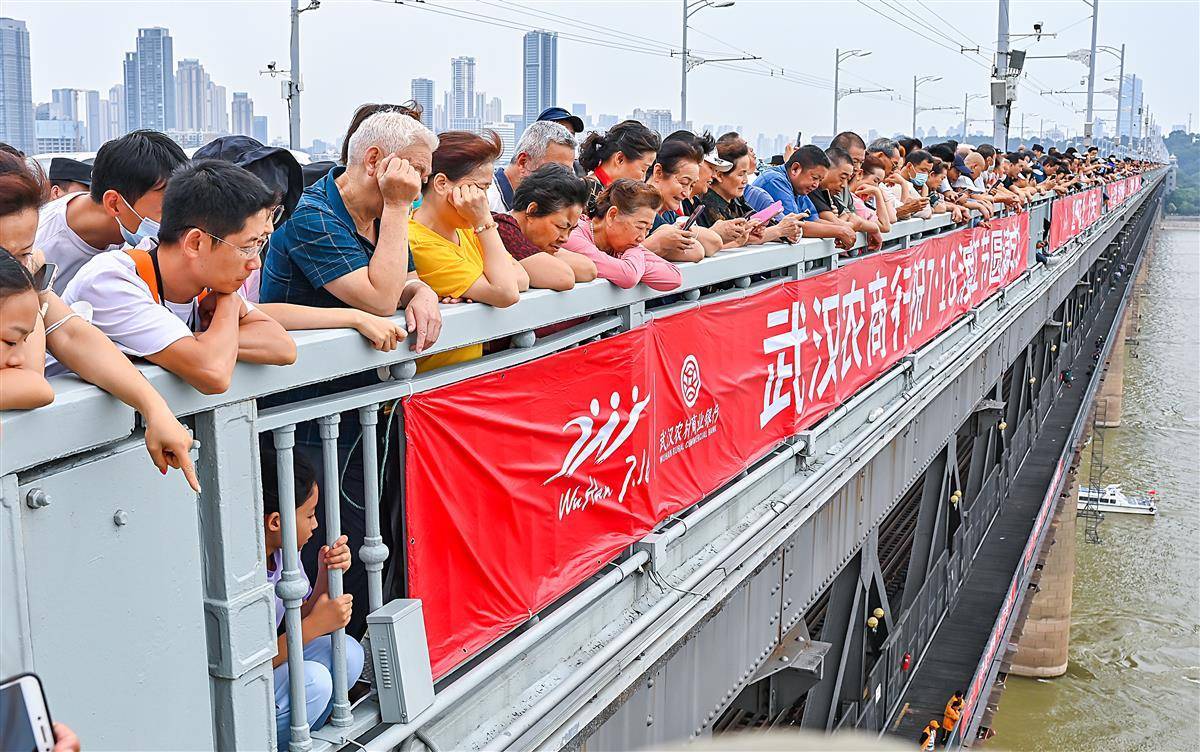 7月16日,第48届武汉7·16渡江节于上午8时10分鸣枪开赛,来自中外的2000名泳者聚集武汉,挑战横渡长江,尽显征服长江的豪迈。武汉长江大桥成了许多市民游客的最佳看台,他们站在桥上,看泳者横渡长江。