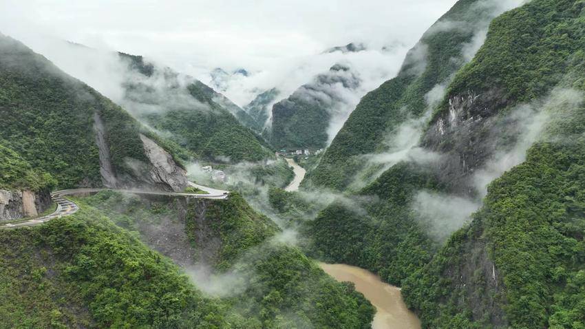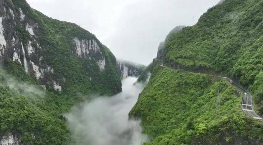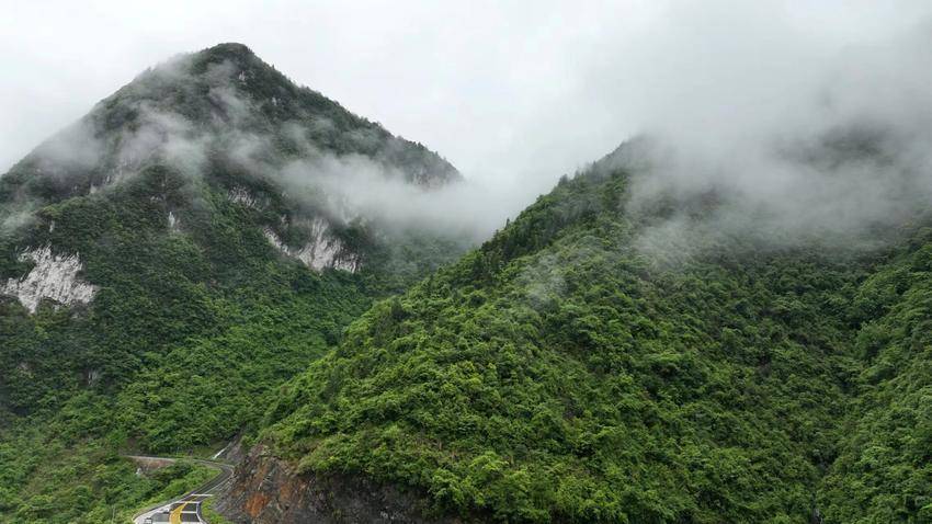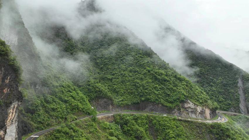 大河奔流,青山隐隐,白云飘飘。雨雾中的鹤峰,纤尘不浮,空气清新。行驶于通天大道,如在画中畅游。(湖北日报客户端 通讯员 任忠诚)