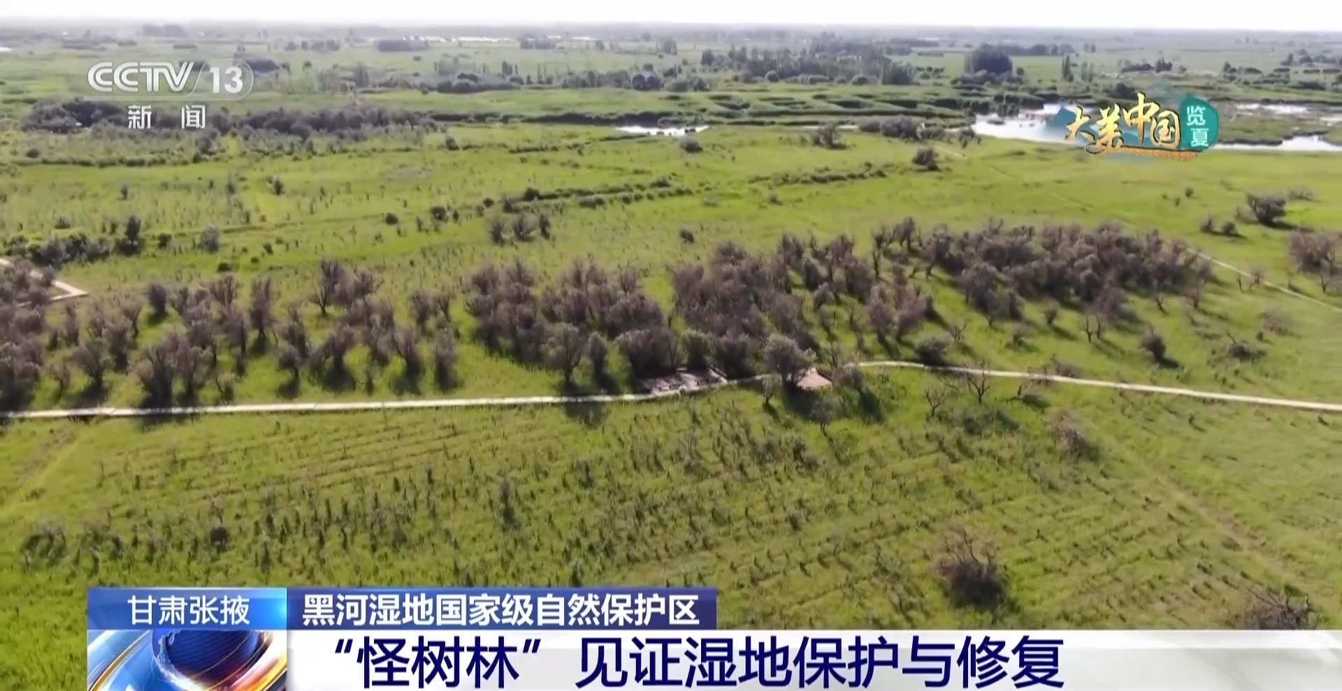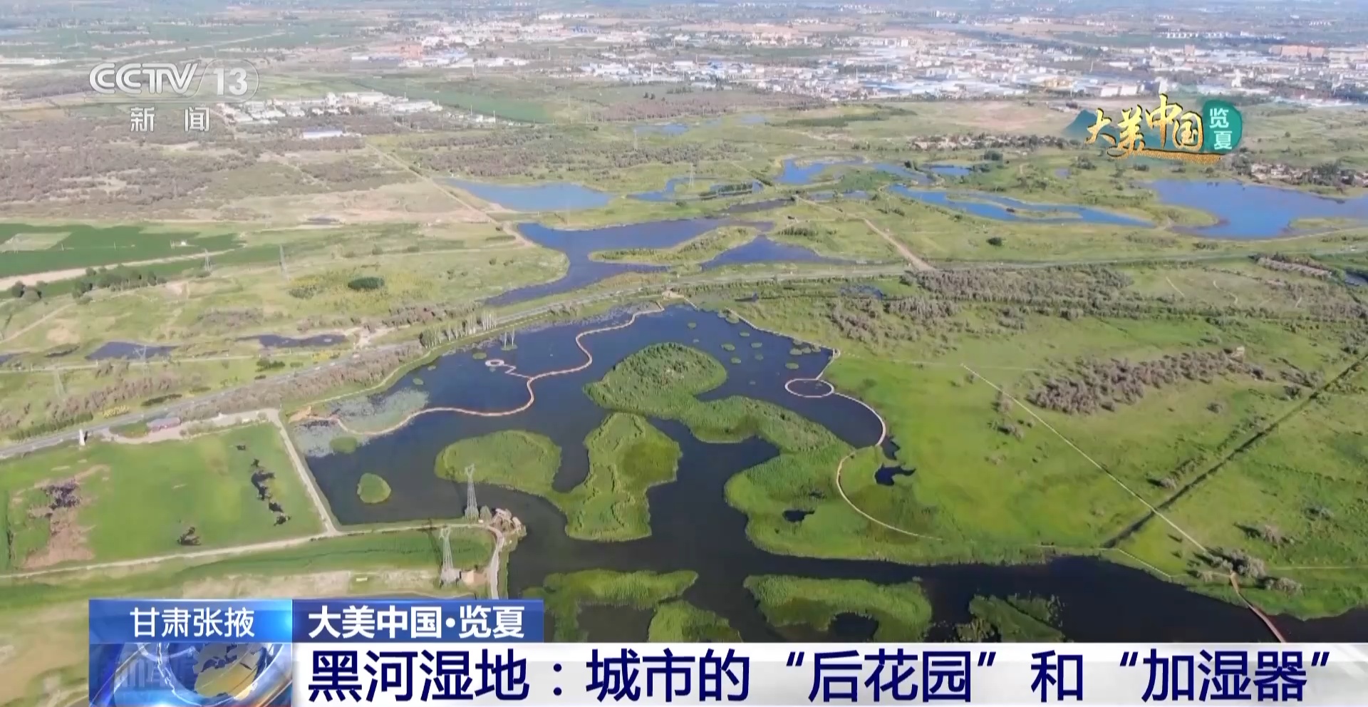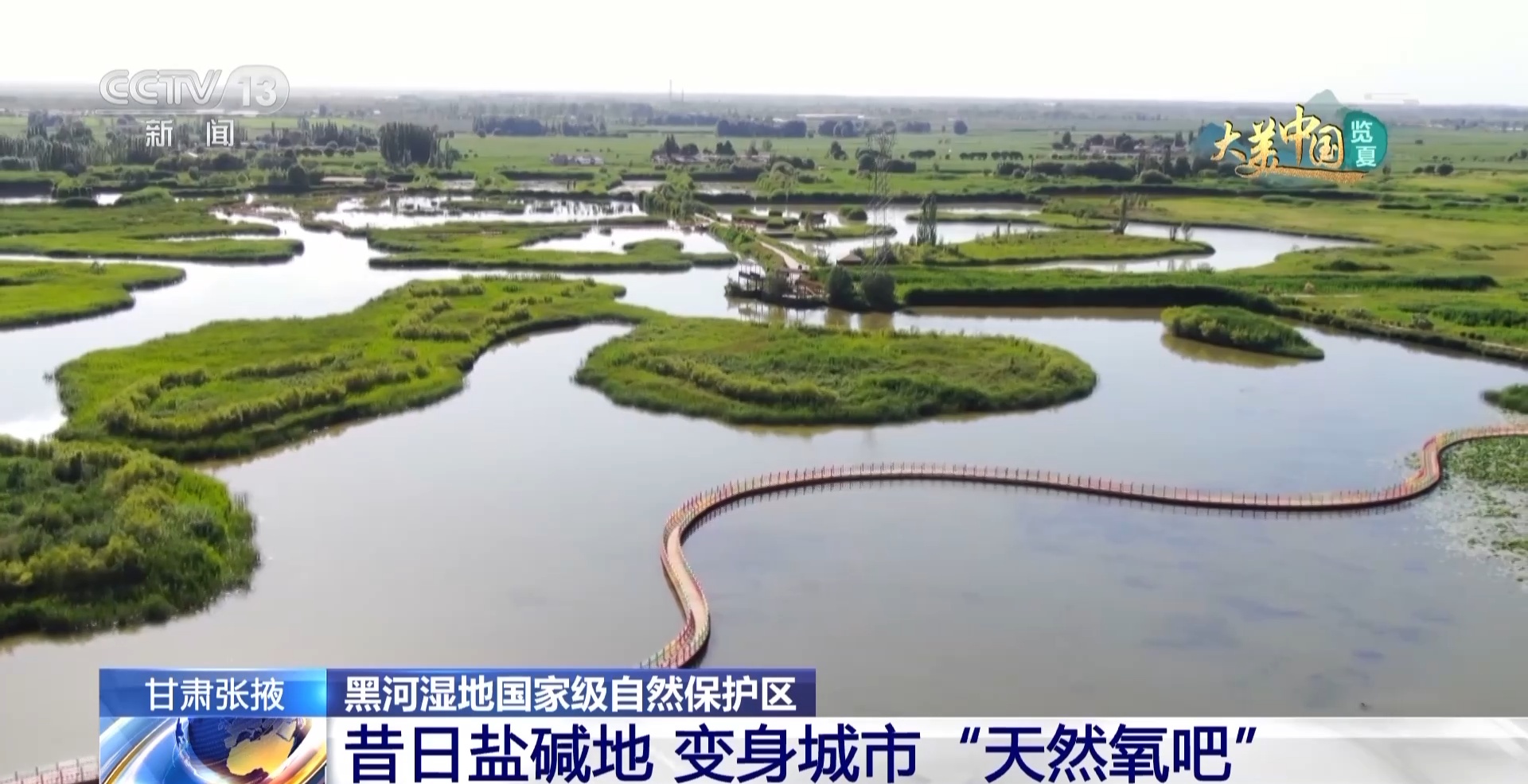 总台记者 马丽:事实上,黑河湿地流域的生态环境并非一直如此。就拿我现在所在的张掖国家湿地公园来说,在20世纪90年代,这里河道堵塞、水源缺乏,过度的利用使得土地变成了盐碱地。但近十年,当地按照“保护、修复、提升”的原则,整体治理,通过疏浚河道,引上游来水补给,洗去盐碱,使水面重新恢复了生机。当地还通过退耕还湿、植被补种、修建巡护通道和观景栈道等,形成了连片整体性的湿地景观。如今的张掖国家湿地公园变身为城市的“天然氧吧”,更是湿地知识科普教育基地,每到周末都有孩子来学习湿地知识,探索湿地的奥秘,通过一个孩子带动一个家庭,提升了大家湿地保护的意识,打造生态宜居的城市生态环境。