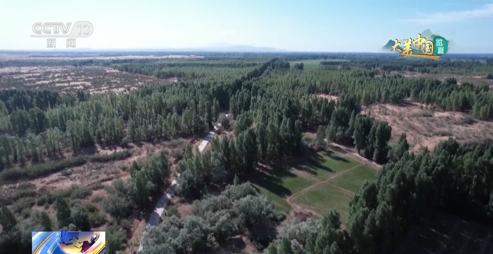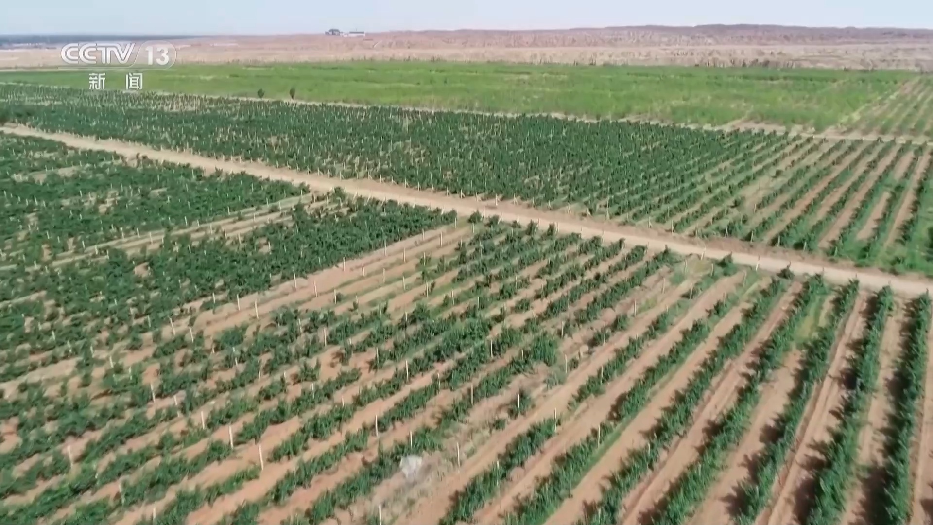 总台记者 马丽:这里是甘肃省张掖市临泽县平川镇黄家堡村,从这里向北22公里,就到沙漠腹地。而在村子南面不到2公里处,就是滋养了整个县城的黑河。在临泽,经过近七十年的治理,这里90%的沙漠已经成为固定半固定沙丘。