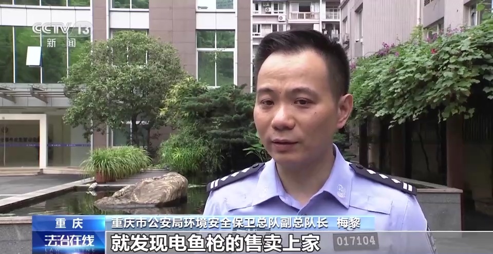 重庆市公安局环境安全保卫总队副总队长 梅黎:我们通过本次专案的作案工具,我们循线追踪就发现电鱼枪(防鲨枪)的售卖上家是在湖南的银某某处购买的。通过对他的资金流水还有销售记录进行深入研判和梳理,就发现短短一年时间,向长江沿线各省市一共售卖了两千多个电鱼枪(防鲨枪)。