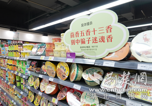 荆楚网(湖北日报网)讯(通讯员 柯勇、魏俊)“萝卜生菜油麦菜,莫被骗子当韭菜”“茴香五香十三香,别中骗子迷魂香”“米饼雪饼老婆饼,投资理财是陷阱”“鸡蛋鸭蛋鹌鹑蛋,别被骗成穷光蛋”……7月18日,十堰市房县城关镇首家百姓“反诈超市”正式开业。一句句诙谐幽默、朗朗上口的反诈宣传标语一下子“戳中”心窝。这些标语遍布各类商品货柜的醒目位置,让前来逛超市的居民在轻松购物的同时,也能学习反诈知识,提高反诈意识。