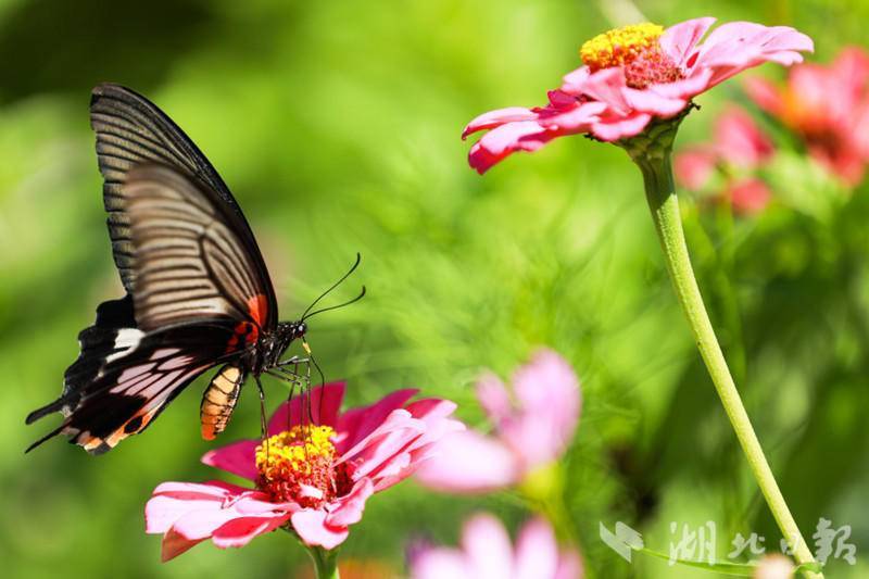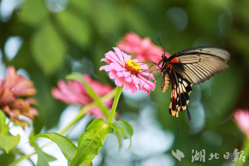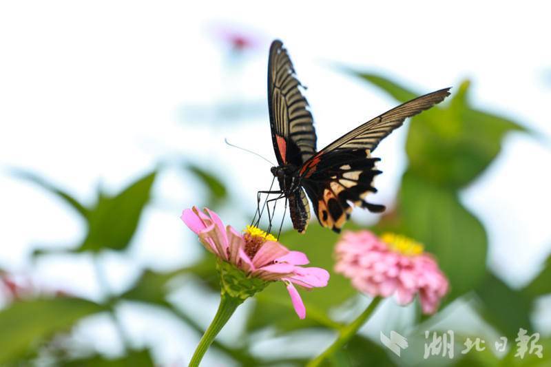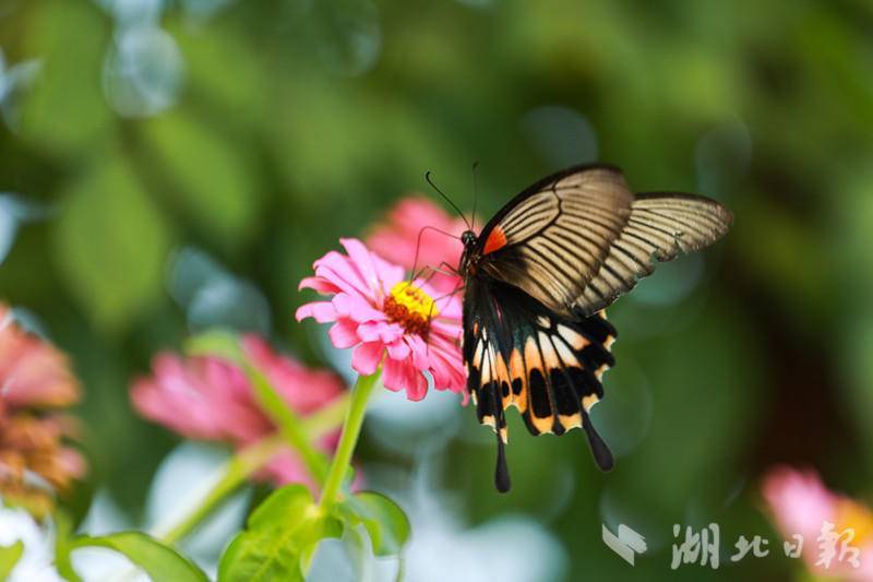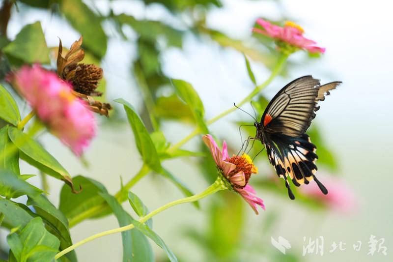 湖北日报客户端讯(通讯员 曾毅)盛夏时节,在来凤县漫水乡油房坳村默乡农场的花海里,一只只蝴蝶幼虫羽化成五颜六色的蝴蝶,他们有的停留在花蕊上吸食花蜜,有的翩翩起舞,舞姿千姿百态,美若画卷,吸引不少游客前来观赏。