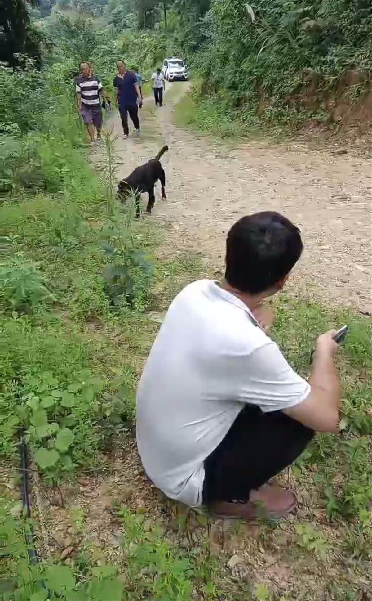 7月18日,距离父亲失联已有一个多月,向女士再次来到毛坝乡附近寻找父亲。向女士拍摄的视频显示,当地警方已派了多辆警车帮忙寻找老人,还派出了警犬在山间搜寻,政府工作人员也在帮忙寻找。