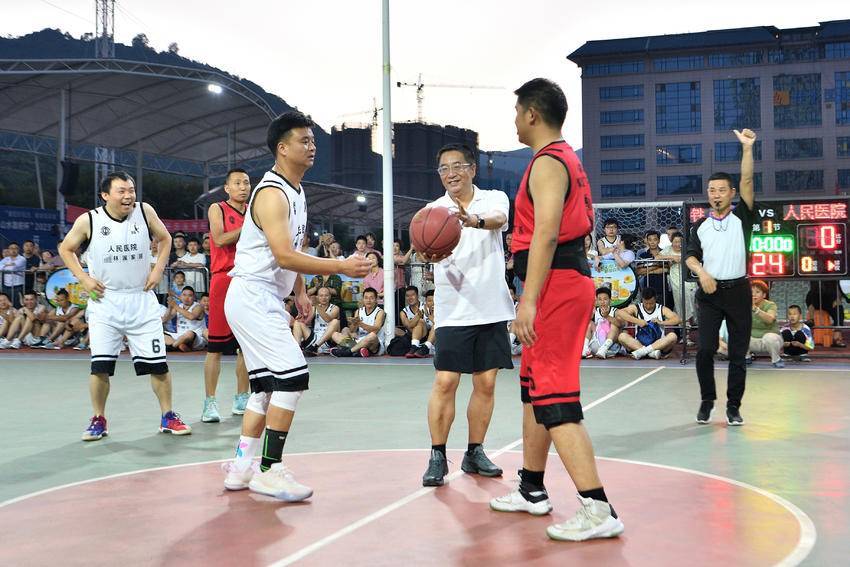 县纪委监委和县人民医院篮球代表队进行了首场比赛,大家你追我赶,紧咬比分,尽显团结合作、勇于拼搏的精神面貌。比赛激烈精彩,观众不时为球员们的精准投篮鼓掌喝彩,尽情享受篮球运动的快乐。